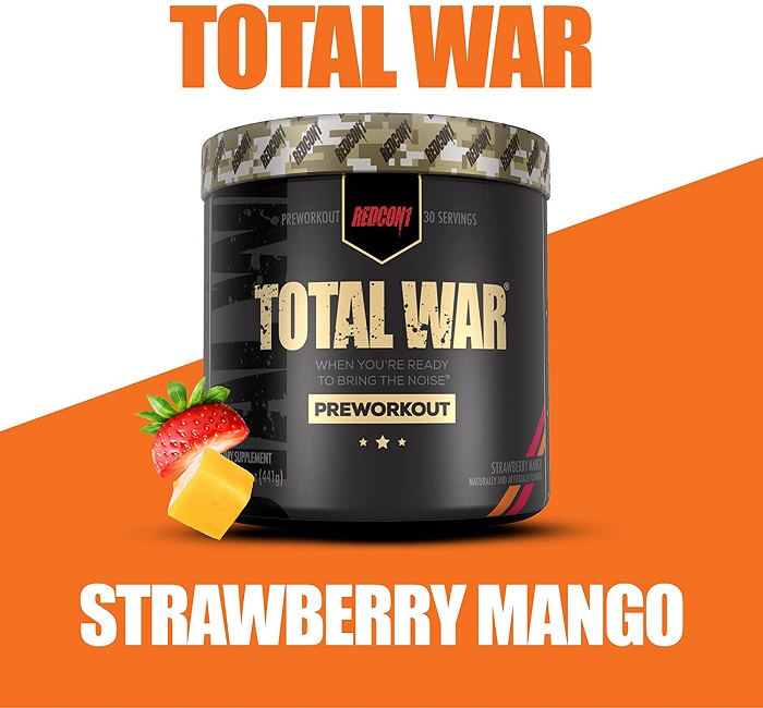 Trong các dòng sản phẩm bán chạy nhất của Redcon1, nổi bật nhất phải kể đến TOTAL WAR Pre workout. Đây là một trong những dòng sản phẩm tăng cường năng lượng trước tập được ưa chuộng nhất trên thị trường thực phẩm bổ sung.