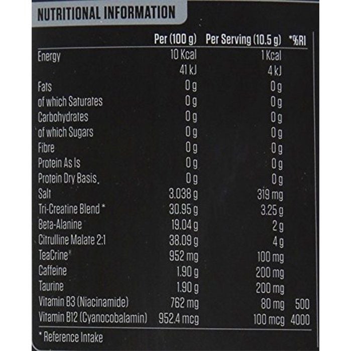 3.25g Tri - Creatin: Hỗ trợ tăng sức mạnh và tăng cơ nạc. Thành phần này có chức năng như vậy là nhờ vào 3 loại Creatin (Creatine Monohydrate, Creatine Ethyl Ester, Creatine HCL) sở hữu độ tinh khiết cao.