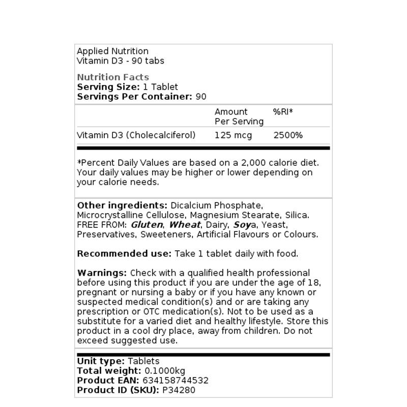 (THANH LÝ - DATE GẦN) APPLIED NUTRITION VITAMIN D3 90 VIÊN
