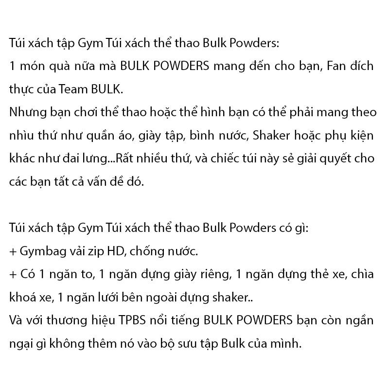 BULK POWDERS TÚI XÁCH ĐEN LỚN