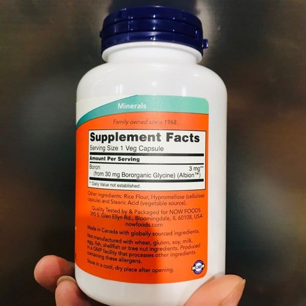 NOW Boron 3mg là một loại thực phẩm bổ sung khoáng chất, cung cấp khoáng chất Boron thiết yếu cho cơ thể. Sau đây là một số công dụng của NOW Boron 3mg: