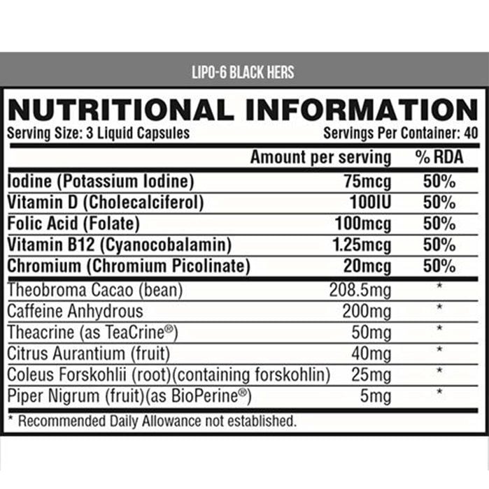 Thành Phần Của Nutrex Lipo6 Black Her Ultra Concentrate