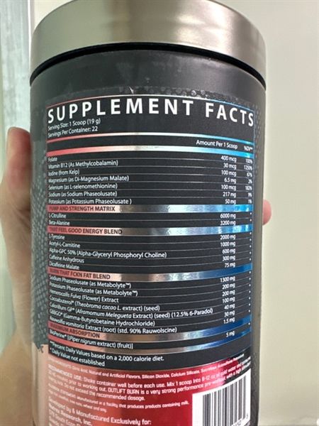 - Hỗ trợ sức mạnh và sự tập trung: Outlift Burn có khả năng cải thiện sức mạnh và tăng cường tập trung, giúp bạn tận hưởng buổi tập hiệu quả hơn.