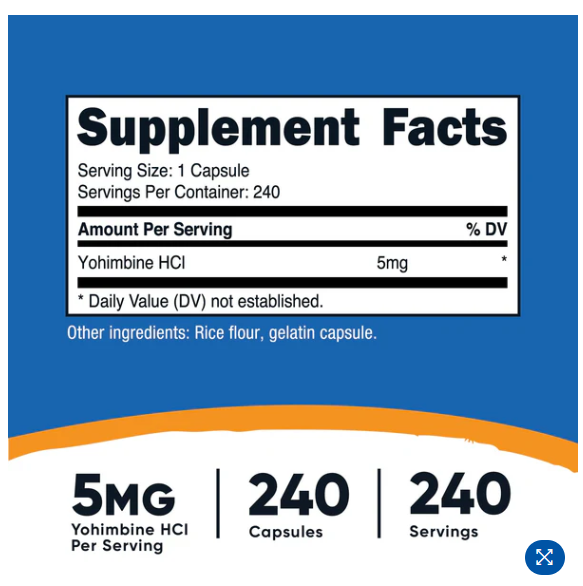 NUTRICOST YOHIMBINE 5MG HCL 240 VIÊN NHỘNG