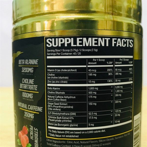 🎯 THÀNH PHẦN SẢN PHẨM PRIMEVAL LABS APESHIT ALPHA PRE 150GRAM: - Beta-alanine: Hạn chế mệt mỏi cơ bắp, giữ cho cơ bắp luôn hoạt động ở trạng thái tốt nhất, hạn chế sản sinh acid lactic gây ra tình trạng đuối sức. - Choline Bitartate: tăng độ tập trung, cải thiện tinh thần giúp tập trung luyện tập - Yohimbe Bark Extract: giúp giảm cân nhờ đốt cháy chất béo xấu trong cơ thể. - 3,3 'Diindolylmethane (DIM): Hỗ trợ giảm cân, ngoài ra còn giúp tái tạo xương khớp\ - Boron: gúp tăng cơ, hỗ trợ sinh lý cho nam giới - Ngoài ra sản phẩm còn một hỗn hợp gồm Caffein và các chất khác giúp bổ sung khoáng chất và mang đến cho bạn sự tập trung cao độ trong luyện tập.